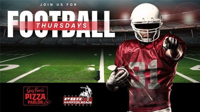 Guy’s Pizza Parlor (1976 Power Plant Parkway, Suite B) is the perfect spot for Thursday Night Football. “Gameday Thursdays” features $2 pizza slices, drink specials, and the game shown on LED TVs and a projector screen. Doors open at 6PM and guests must be ages 21 and over. For more information, call 757-827-8100.